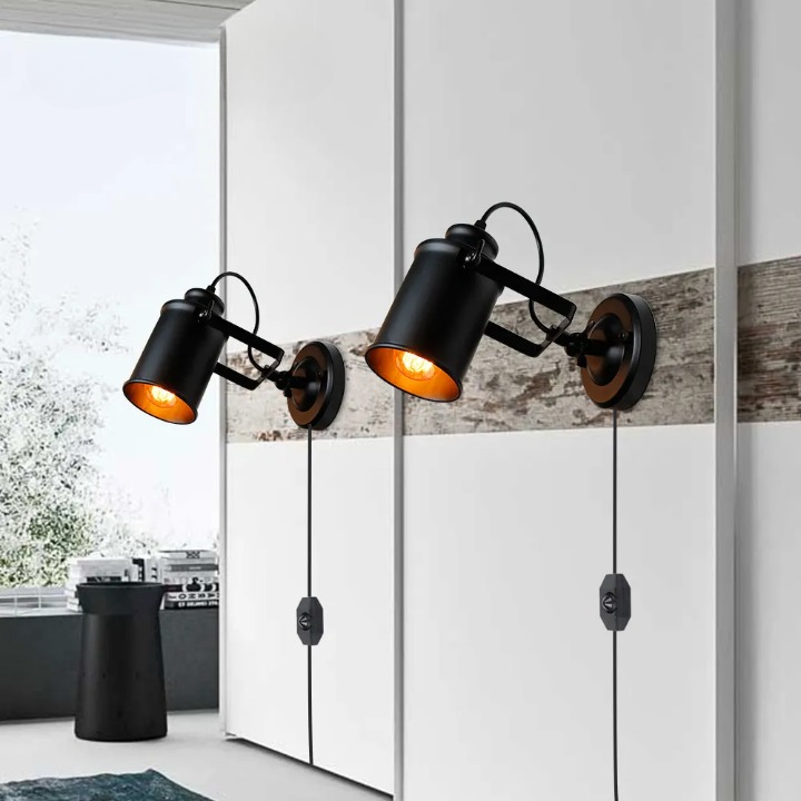 Ces appliques de teinte noire s’intègrent dans un cadre où le design industriel côtoie la modernité. Leur forme cylindrique et la finition métallique des abat-jours renforcent leur allure sophistiquée, tout en mettant en valeur l’éclat chaleureux des ampoules à filament. Orientables, elles permettent de diriger la lumière selon vos besoins, créant une atmosphère accueillante dans chaque coin de votre pièce. Le montage sur des supports muraux ronds confère un caractère discret, alors que les interrupteurs judicieusement situées sur les câbles offrent une facilité d’accès insoupçonnée pour une gestion pratique de l’éclairage.- Certification: CCC, CE, ROHS