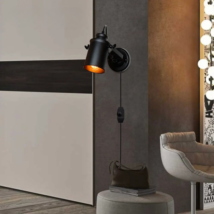 Ces appliques murales avec interrupteur allient praticité et esthétique industrielle. L’ajout d’un interrupteur sur le câble facilite leur utilisation, vous permettant d’allumer et d’éteindre la lumière aisément. La structure en métal noir et l’ampoule apparente confèrent une touche d’authenticité et de caractère à votre décoration, parfait pour une ambiance loft ou atelier. Créez un éclairage sur-mesure grâce à leur design réglable.