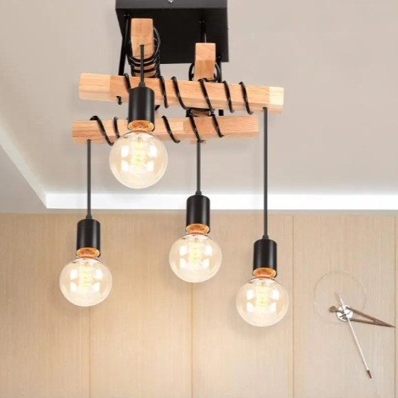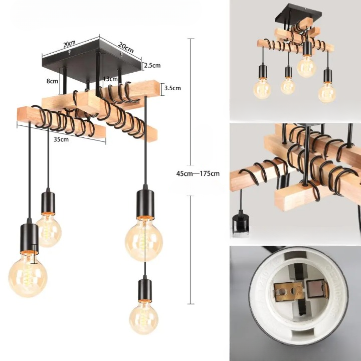 Ce luminaire industriel moderne n’est pas seulement un plafonnier; c’est une œuvre d’art. Les matériaux de qualité comme le bois clair et le métal noir s’associent pour offrir à la fois robustesse et élégance. Facile à intégrer dans divers styles décoratifs, il mettra en valeur votre espace de vie, tout en offrant un éclairage optimal grâce à son design ingénieux et ses ampoules décoratives.